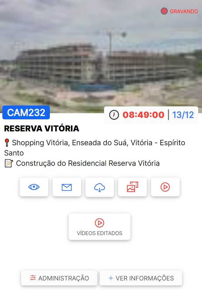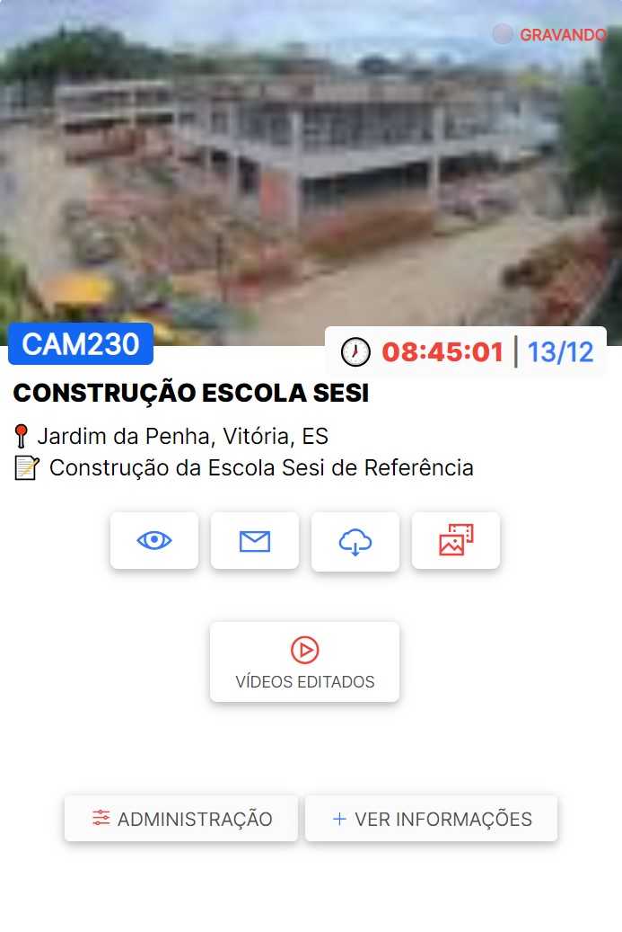 Acompanhe remotamente sua obra 24 horas por dia através de nosso portal de Acompanhamento Remoto.Com nosso portal sua empresa será capaz de acompanhar todo o processo durante 24 horas por dia com link seguro, recebimento de emails periódicos e capacidade de Gerar seus próprios timelapsesPortal de Acompanhamento Remoto